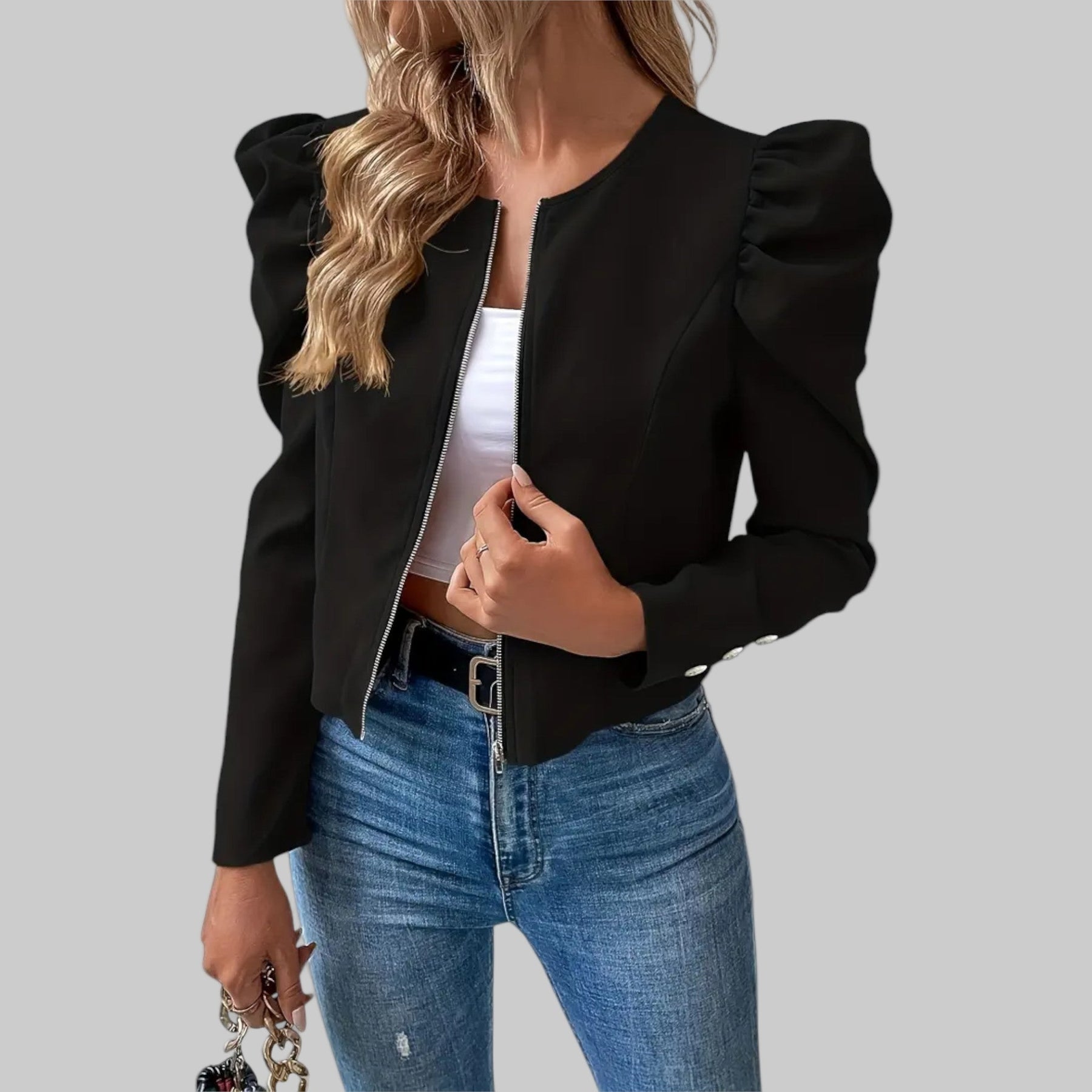 Drøm deg bort i en jakke som får deg til å føle deg elegant med minimal innsats. Lucia™️ er laget for kvinner som elsker enkel stil med en touch av det feminine. De mykt puffete ermene og det rene designet gjør denne jakken til det perfekte plagget – enten du skal på jobb, en kafétur eller en middag med venner.